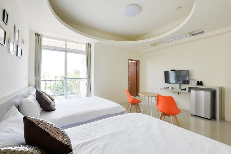 房間皆以白色風格氛圍打造,走簡約路線,住起來放鬆無壓迫感,所有房間皆有免治馬桶,四人房皆有陽台,並請專業廚師每天早上為客人準備早餐。