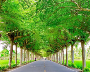 筆直的公路兩旁被濃綠的樹木包圍,因為車流量不多所以非常適合騎乘單車遊覽,徜徉在綠色隧道之中還能聞到樟樹的芬芳,另外,在這裡每兩周都會舉辦台東2626市集,讓大家在清新自然下認識許多台東在地的小攤販。