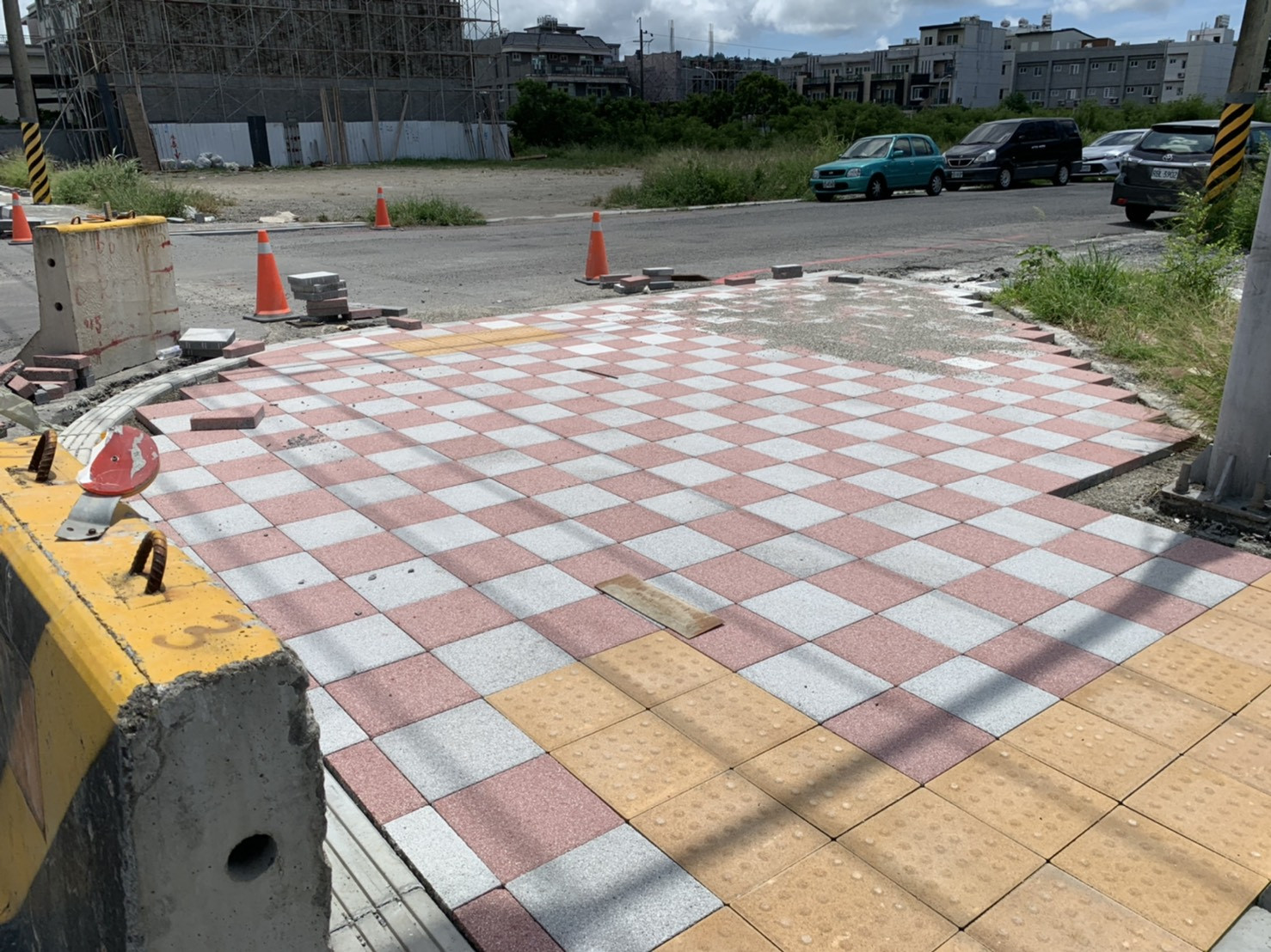1.新站路D段0+420~0+140(右側)高壓步道磚施作。