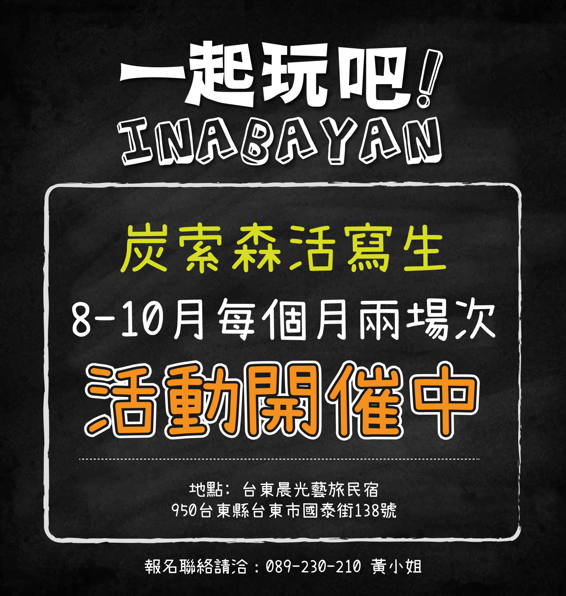 首頁 最新消息 周邊活動 【INABAYAN 一起玩吧】炭索森活寫生 學員招生中 最新消息 【INABAYAN 一起玩吧】炭索森活寫生 學員招生中 2020.07.22 【周邊活動】#免費活動 #人數有限手刀填寫#炭索森活寫生#DIY#創作招生中 大家有沒有想過大自然的樹枝也可以搖身一變為畫筆呢?這次我們邀請到認為藝術來自於對自我生命探索與實踐的?葉筑菀 藝術家,來教導我們如何運用大自然素材DIY自製炭筆,創作素描畫寫生,名額有限,快報名一起來玩吧 ? 【創作時間】場次一?2020/08/09 (日)14:00-16:00場次二?2020/08/16 (日)14:00-16:00 【創作地點】?臺東晨光藝旅民宿950臺東縣臺東市國泰街138號聯繫電話 089 230 210 黃小姐 【上課須自備物品】❶樹枝 (一個手指頭的粗度但不要超過鋁罐高度)❷美工刀❸窄口玻璃罐 (廢棄的玻璃飲料罐可) 【教師簡介】?葉筑菀/Jhuwan Yeh學生時期接觸到龐畢度藝術中心藝術教育展團隊,爾後決意投身藝術教育,歷經池上、電光、新武等部落小學後,目前移居觀山,將自己經年累月四處看展覽創作的能量,回饋給在地學子。 曾經於鹿野書院舉辦過主題式集體創作聯展、參與花蓮青年藝術創作培力計畫共同創作、亦是台東美術館假日親子藝術工作坊的講師。 【報名方式】請填寫此表單?(按此進入)相關疑問請 #私訊【臺東第一站 ‧ 迎嚮綠生活】臉書粉絲專頁(連結失效即為報名人數額滿)#臺東第一站 #迎嚮綠生活 #INABAYAN伊那巴漾 #臺東門戶道路景觀計畫#台東車站 #台東藝文 #台東大小事 #台東第一站#INABAYAN#一起玩吧#周邊活動#一起玩吧 #綠色生活推廣 回上一頁